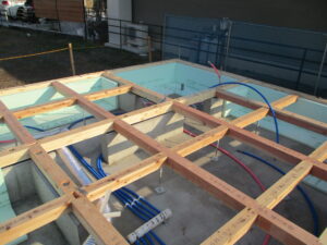 ◇内部 ユニットバス設置・室内床部分、天井部分の施工の様子