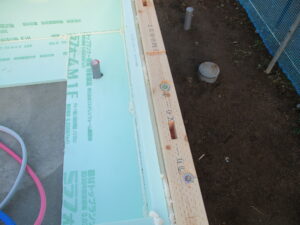 建物が完成するとナカナカ見る事の出来ない場所となりますが、写真の工程を経て、重要な箇所は施工されています。基礎の内周は断熱材で覆い、床下へは冷たい空気が入らない工夫をしています。