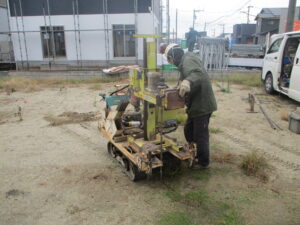 ◇地盤調査の様子 基礎工事前に必ず行う調査。結果により補強工事を要す場合が有ります。今回は「地盤に問題無し」。安心して工事へと進めます。地盤保証も付帯されます。