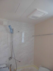 内部の様子~大工工事が進んでいます。ユニットバスも設置済。