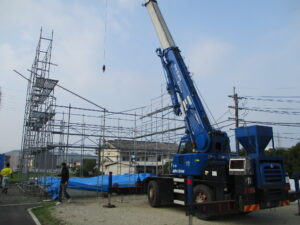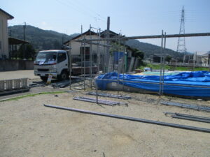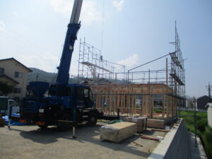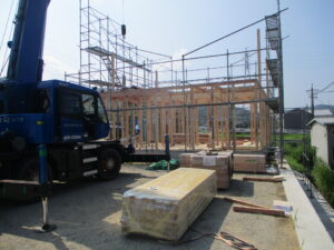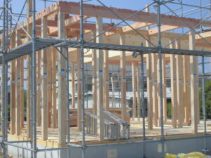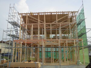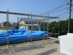 足場設置~棟上げ当時の様子