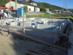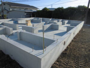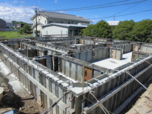 基礎工事~型枠を外し、基礎の全景が見えてきました