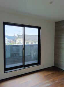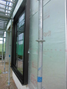 サッシ取付け・外部はタイベックシルバー(透湿防水シート)施工まで終えています
