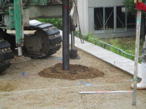 「地盤調査」の様子~工事前に必ず地盤調査を実施します。長く安心して暮らす事が出来る状況なのか?見た目では判らない部分を、この調査によって明確に出来ます。