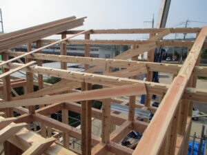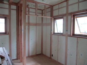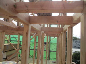 内部の様子~大工さんの作業もあと少しです。この後はクロス施工やキッチン取付などへ進んでいきます。