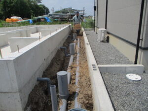 「基礎工事」床掘の様子から~この時期、雨の具合だけが心配の種ですが、荒天になる事無く工事へと進んでいます。建物をしっかり支える重要な工事部分です。