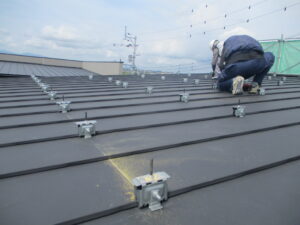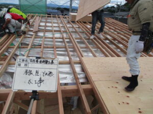 屋根施工~ガルバリウム鋼板(後日、太陽光パネルを設置します)