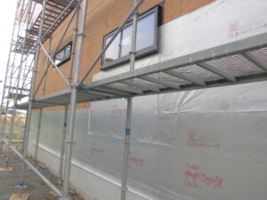 足場設置~棟上げ~屋根部分のルーフィングまで